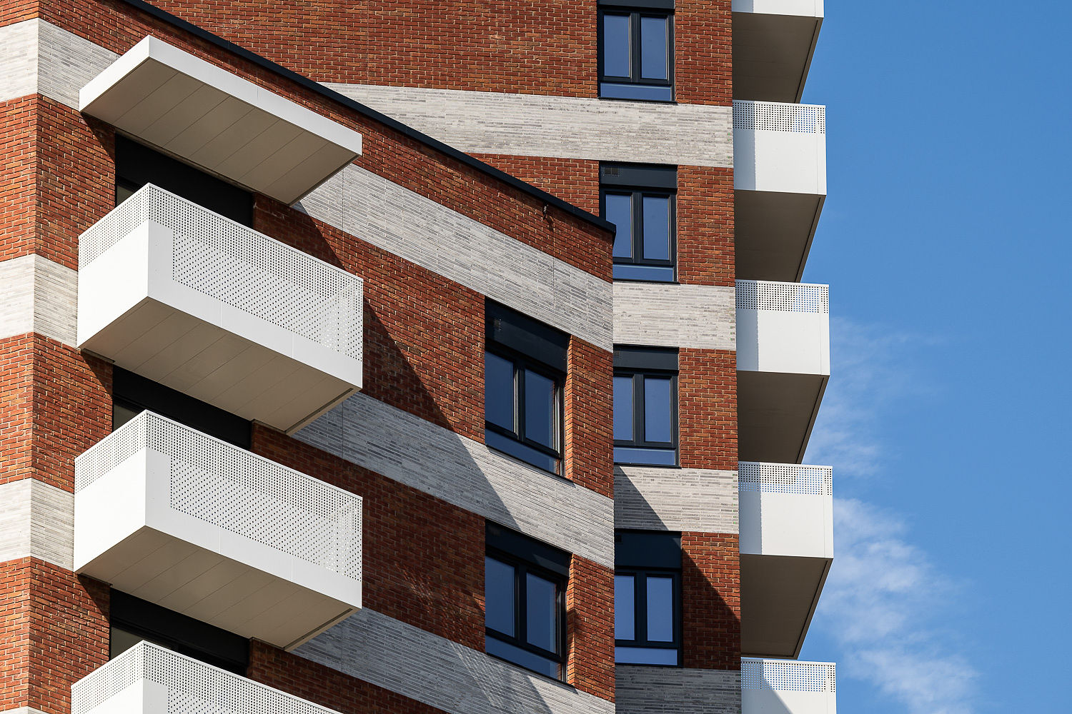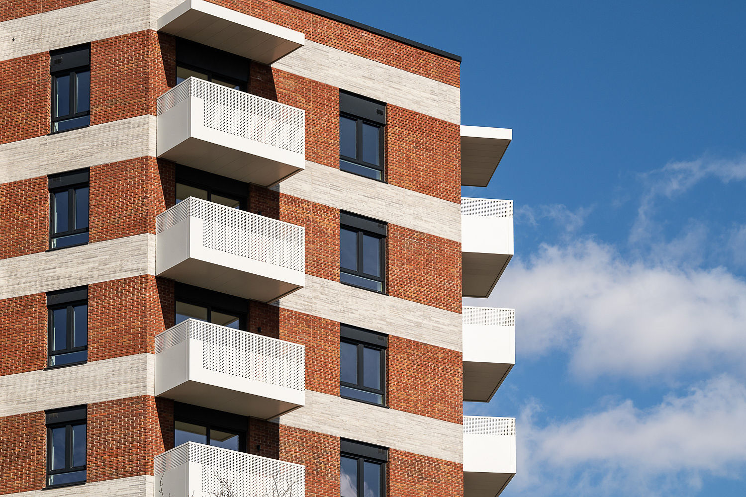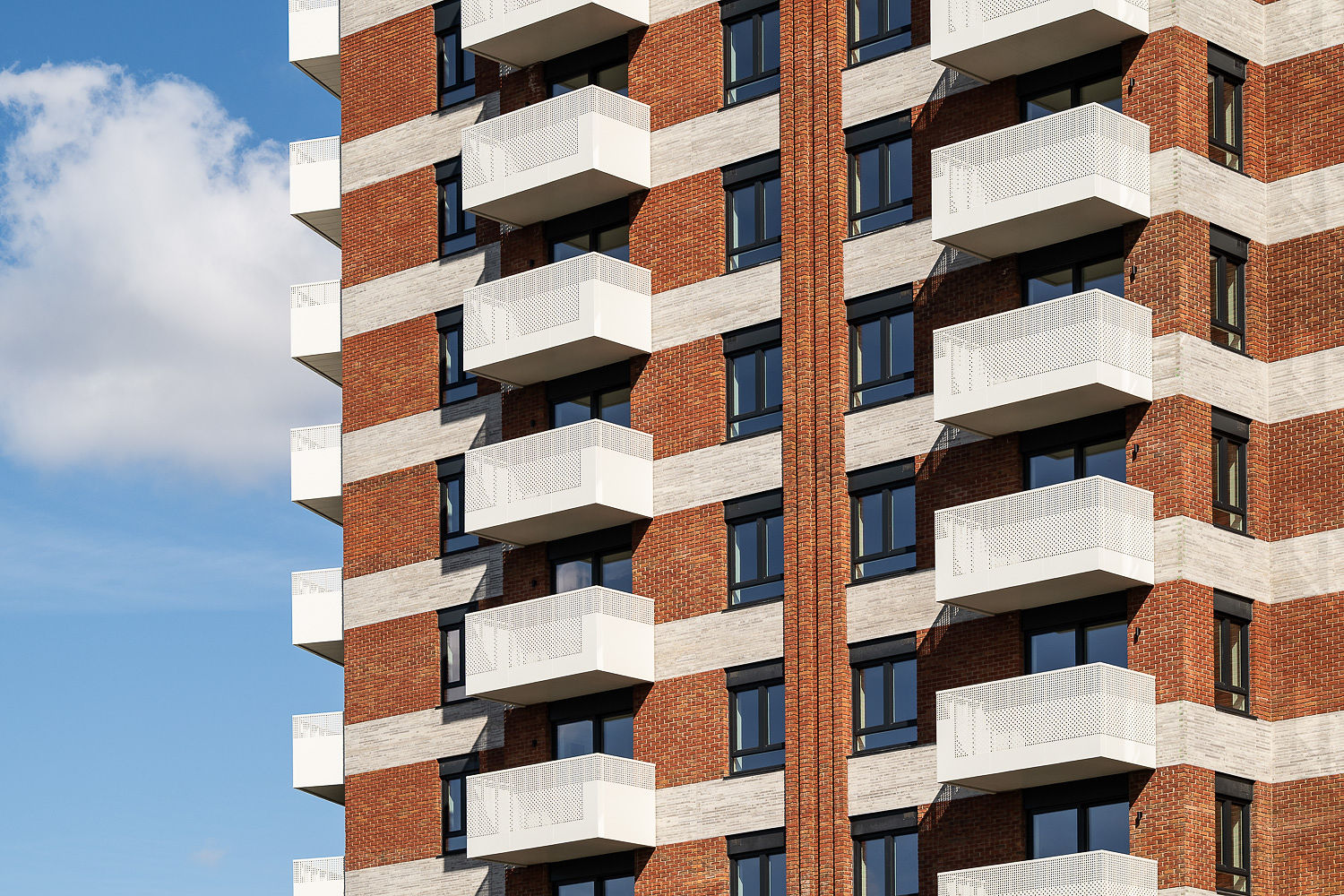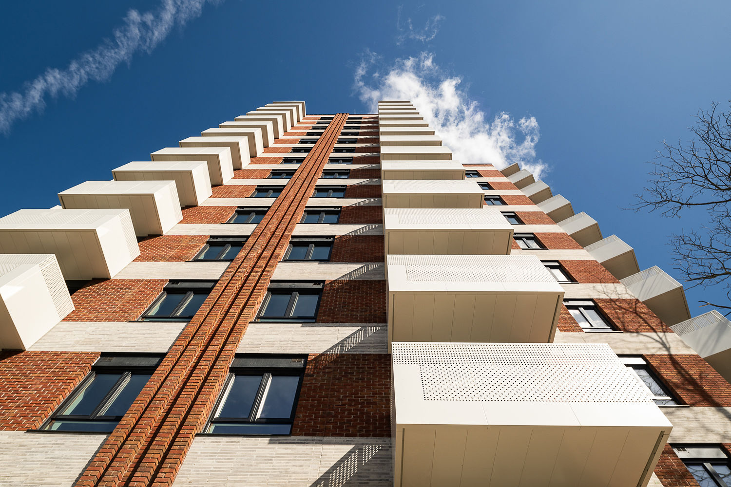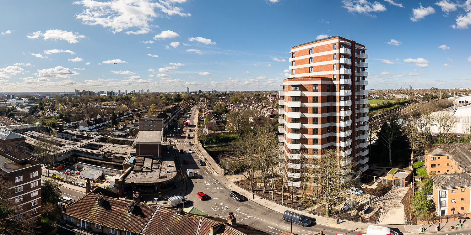 The Brooke House development in Acton for L&Q / Women’s Pioneer Housing is a modern complex of 102 affordable apartments for women, particularly those facing inequality, disadvantage, or abuse. The new 15-storey tower provides a mixture of one- and two-bedroom apartments alongside car parking facilities for residents.